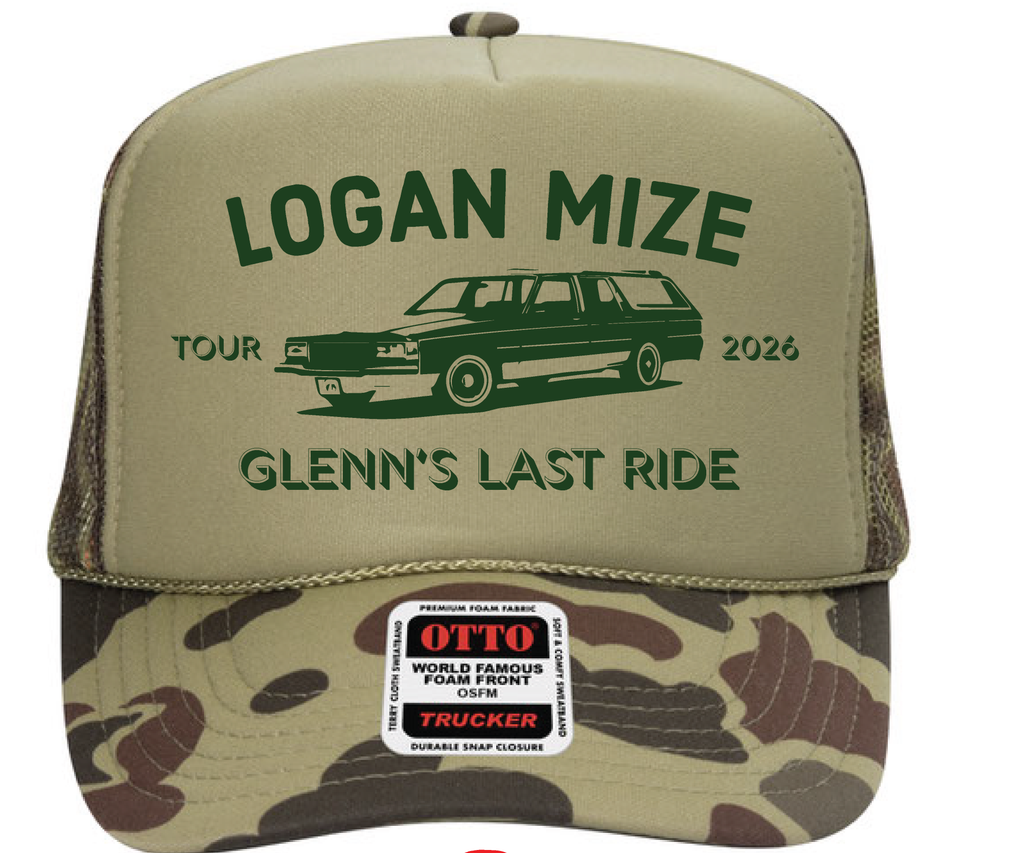 LM is notorious for touring America in an '89 Chevy Caprice named Glenn. This year is not only the 10th anniversary of Glenn's first official tour but it will be his last. After which he will be placed in his very own museum/restaurant/bar. Get the official head gear for his last big adventure and you will be among royalty in Glenn's dynasty. Four Designs to choose from.